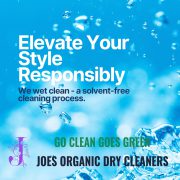 Joe’s Wet Cleaning System provides environmentally friendly care for delicate materials like wool, silk, acetate, and cashmere, as well as sophisticated clothing such as jackets, blazers, fancy dresses, and wedding dresses. Developed over 20 years, this system is effective for hand-washed items and fabrics marked with wash symbols.