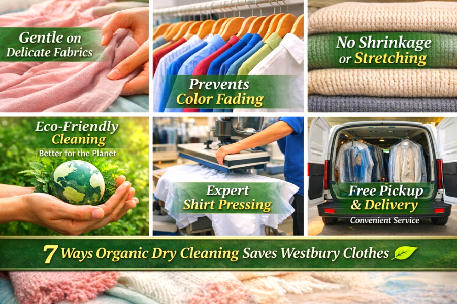 Below are 7 ways organic dry cleaning in Westbury saves your clothes, plus a practical “what to clean now” list for early March.